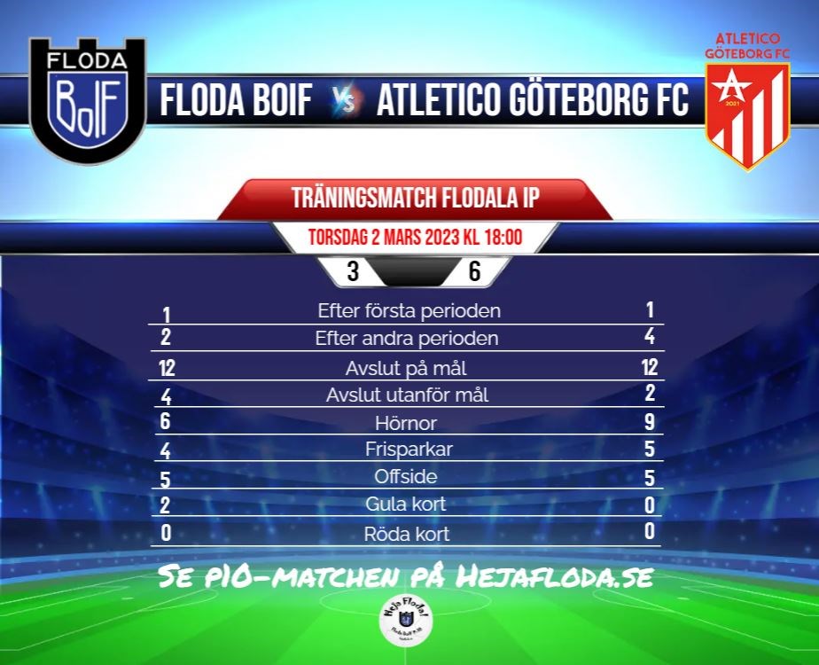 Floda BoIF - Atletico Göteborg FC 3-6 Träningsmatch Torsdag 2 mars kl 18:00 Flodala IP, Floda Matchen ser du på Hejafloda.se U17 2 mar 2023 0kommentarer