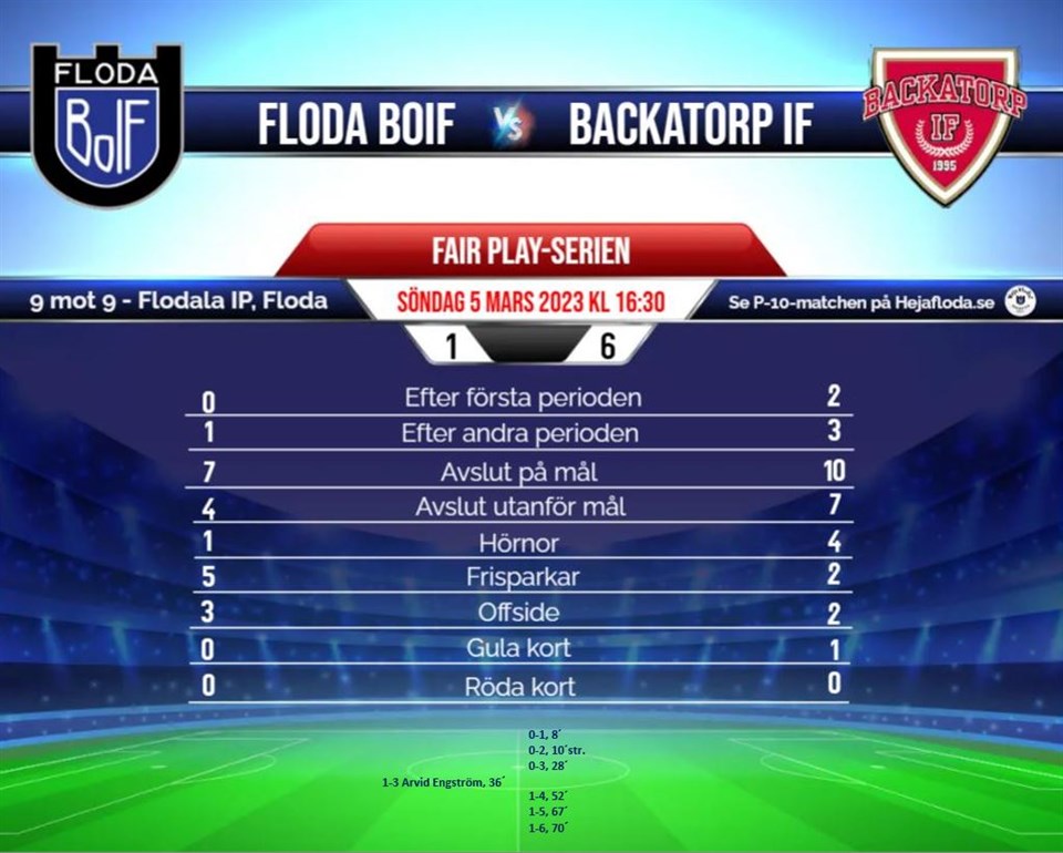 Floda BoIF - Backatorp IF 1-6 Fair Play-serien Söndag 5 mars 2023 kl 16:30 Flodala IP, Floda Matchen ser du på Hejafloda.se U17 5 mar 2023 0kommentarer