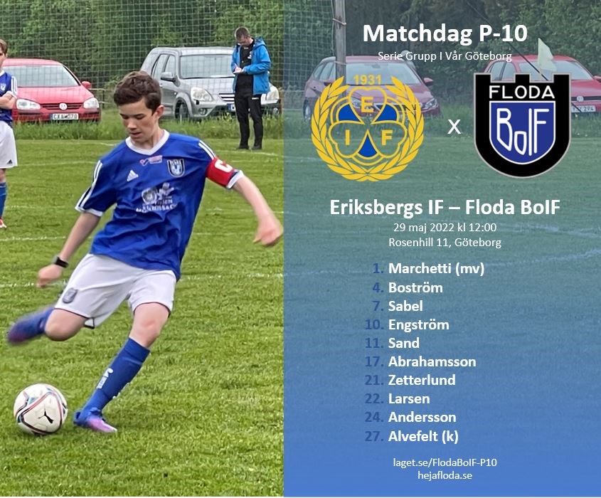 Eriksbergs IF - Floda BoIF Grupp I Vår Göteborg Söndag 29 maj kl 12:00 Rosenhill 11, Göteborg