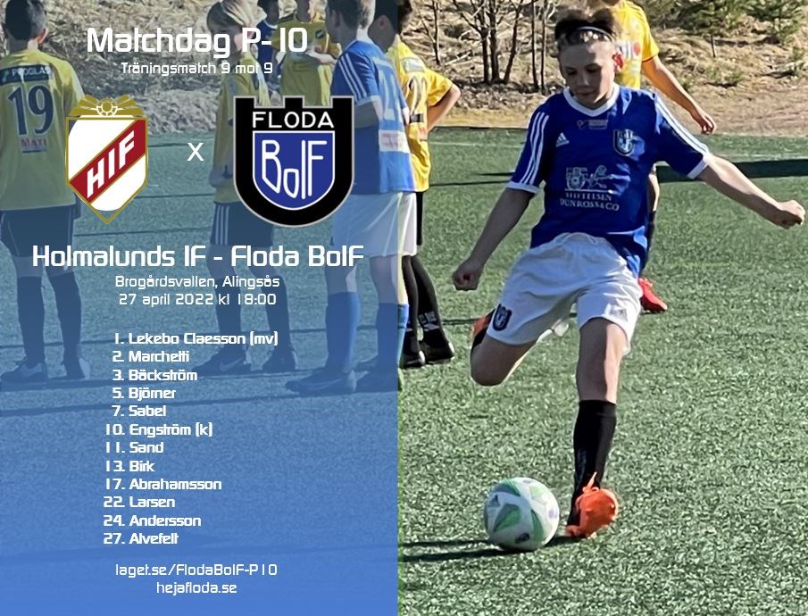 Träningsmatch 9 mot 9 Holmalunds IF - Floda BoIF Onsdag 27 april kl 18:00 Brogårdsvallen, Alingsås